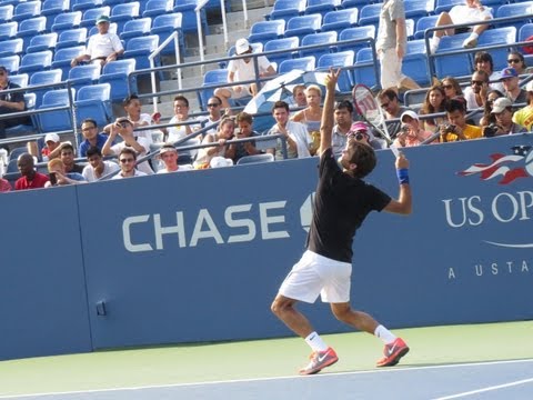 El 17 veces ganador de Grand Slam, Roger Federer, juega contra el #9 del mundo, Stanislas Wawrinka, en un partido simulado, ya que ambos se preparan para el US Open 2013, que comienza el 26 de agosto.